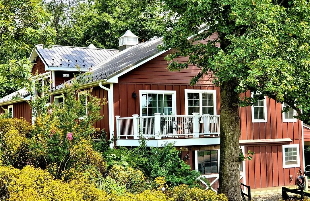 Lovely Barn Rental With Activities Near Shenandoah National Park, Virginia villa comes with a bathroom with a washing machine. Bathrooms also feature hair dryers for added comfort.
